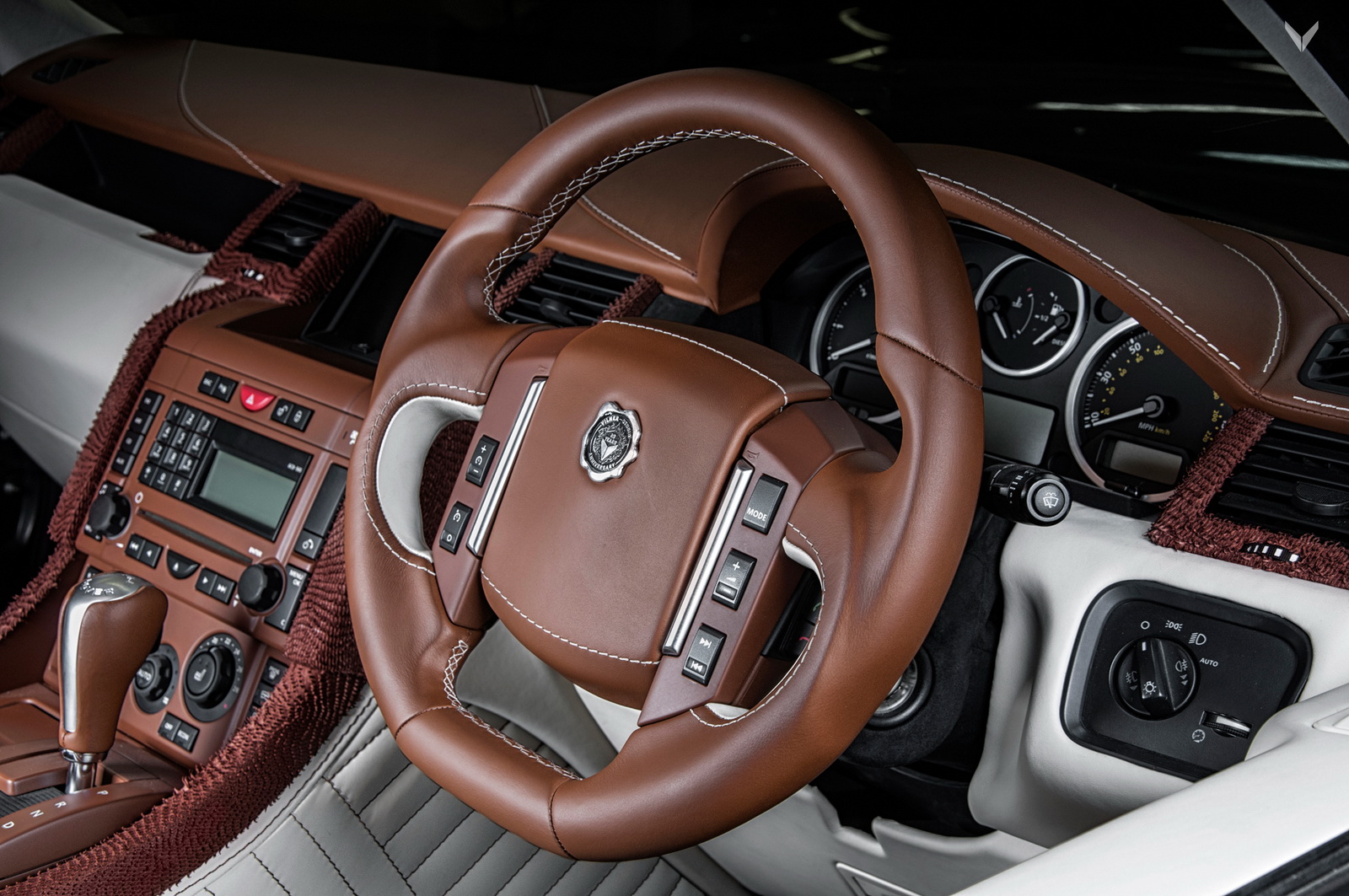 Everything else was bedizened in white and brown leather with contrasting stitching. The attention to detail is impressive, as even the door handles were modified with both aesthetics and functionality in mind. In fact, nothing has been left to chance, with Alcantara covering up the Range Rover’s mirror housing, steering column and even the dashboard sides.
