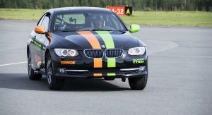 Kivimäki performed the stunt behind the wheel of a BMW 330d, fitted with Nokian tires, and managed to achieve 186.269 km/h (115.742 mph). Impressive, especially as there are some cars incapable of going that fast on all four wheels, not to mention on two.