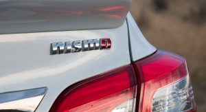 The whole thing rides on 18-inch alloys, which complement the enhanced appearance and aero package. There front, rear, and side panels have been upgraded to not only give it a more aggressive look, but reduce lift by 30 percent at the rear end. Black and red trim help reinforce that this is no ordinary Senta, helped by the proliferation of Nismo logos inside and out.