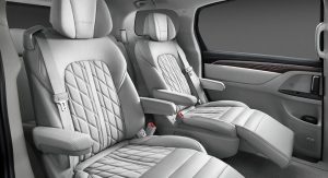 Buick’s latest GL8 is powered by a 2.0-liter SIDI engine, rated at 300 PS (256 HP) and 350 Nm (258 lb-ft) of torque, which is paired to a six-speed DSS transmission, with steering wheel-mounted paddle shifters and start/stop technology. The multi-purpose vehicle can accelerate from rest to 100 km/h (62 mph) in 9.3 seconds and can achieve a combined fuel consumption of 8.9 lt/100 km (26.43 mpg US).