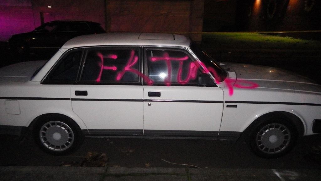Speaking with Katu 2, Chevonne Bell, the owner of the Volvo, said “There’s no stickers. There’s nothing political about my old Volvo, but it was spray-painted along with the vehicle that was on fire.