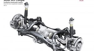 On the road, A5 models feature available sports suspension, which lowers ride height by 23 mm (0.9 in), utilizing different tubular anti-roll bars, dampers and linear-rate springs. Also available is the comfort adaptive damping suspension for the A5, which lowers ride height by just 10 mm (0.4 in) – though the S5 is the one that gets sport adaptive damping suspension as well as dynamic steering.