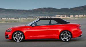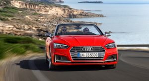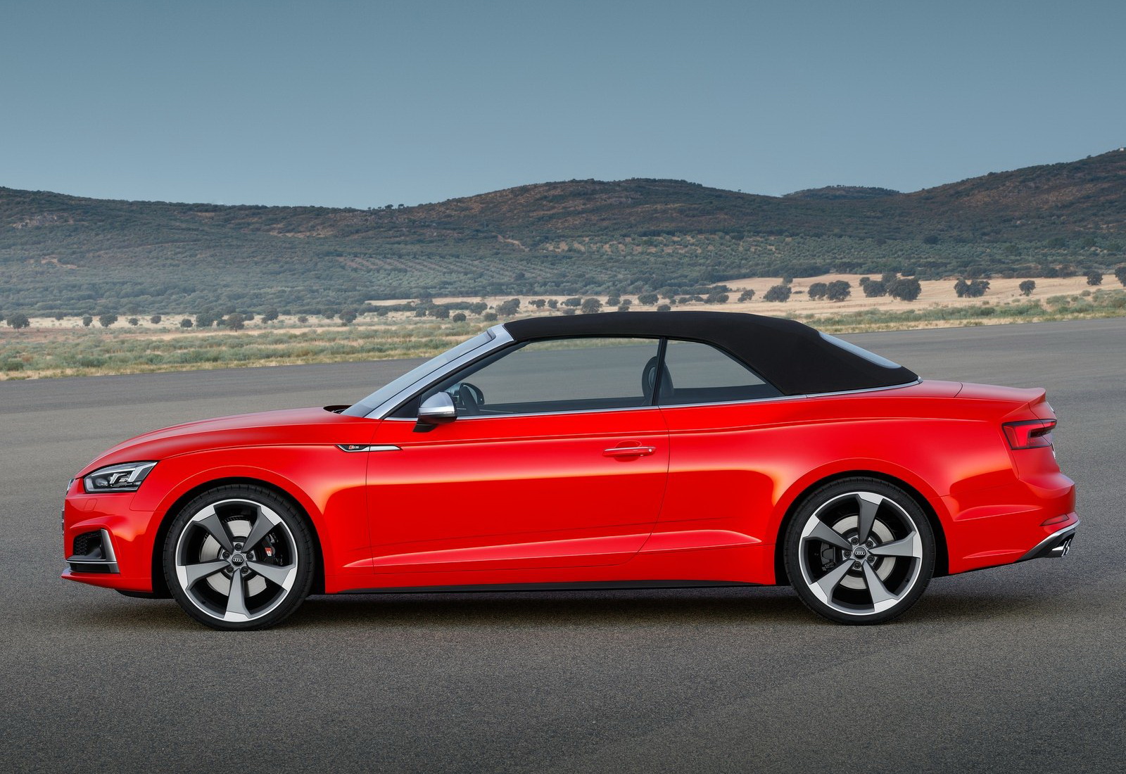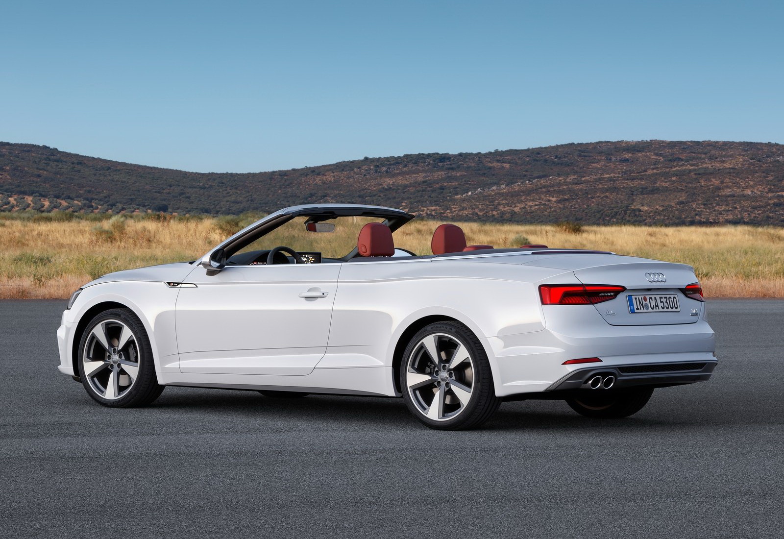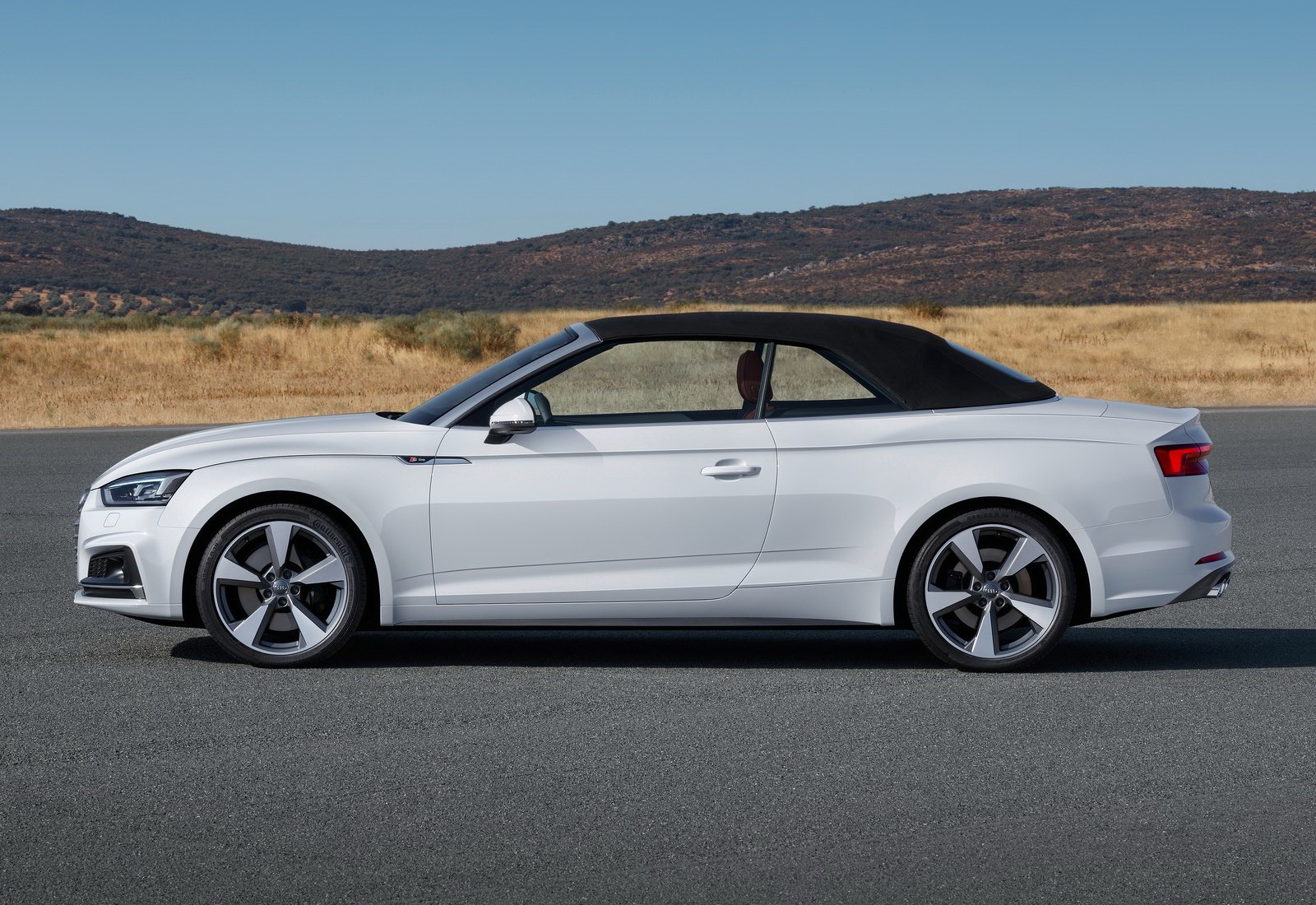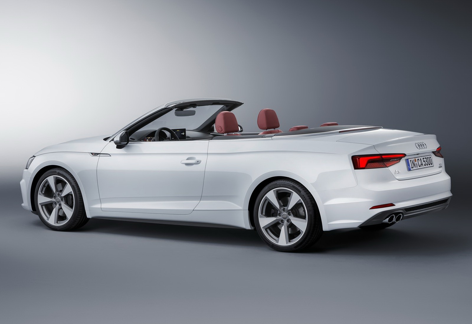Speaking of engines, the Cabriolet will eventually employ the same range of powertrains as the other two A5s, with Europe getting a 252PS 2.0 TFSI, a 190PS 2.0 TDI and a 218PS 3.0 TDI at launch for the regular A5, and a 354PS 3.0 TFSI V6 for the S5 which can reach 100km/h (62mph) in 5.1 sec and top out at an electronically limited 250km/h (155mph). A 190PS 2.0 TFSI gasoline and a 286PS 3.0 TDI V6 diesel will join the lineup shortly after.