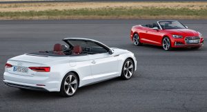 Completing Audi’s A5 lineup after the two-door Coupe, and the five-door Sportback, the 2017 (oe 2018MY in North America) Cabriolet adopts the elegant yet, oh-so familiar, lines from its other siblings, dropping the former’s fixed roof for a newly developed top with one-touch automatic operation that opens in 15 seconds and closes in 18 seconds at speeds of up to 50km/h (31mph).