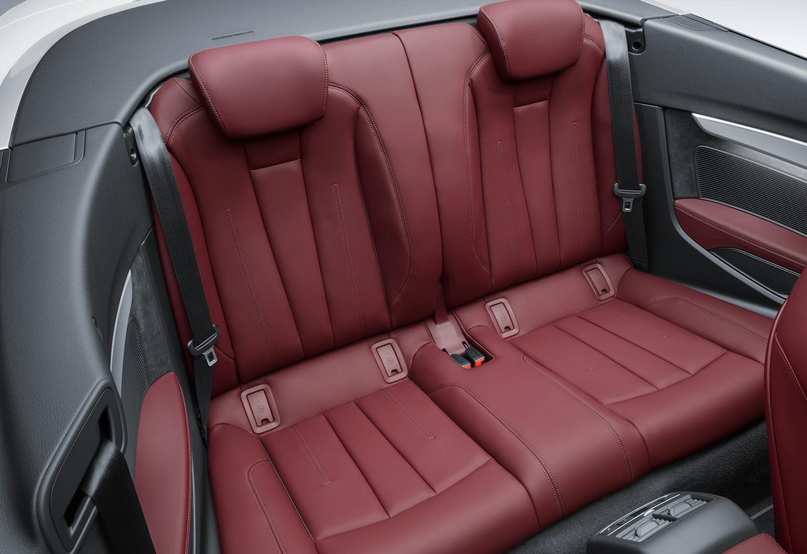 At 4,673mm (183.9 in.) long, the new A5 Cabriolet is 47mm (1.9 in) longer than the predecessor model, while riding on a 14mm (0.6 in.) extended wheelbase at 2,765mm (108.9 in). Together with the more compact design of the seats, this leads to an increase of 18mm (0.7 in.) in rear knee room, with Audi stating that the new model also offers 26mm (1.0 in) additional shoulder room at the front, and an extra 60 liters of boot space at 380 liters (13.4 cu ft) total.