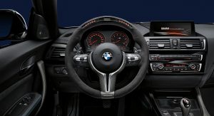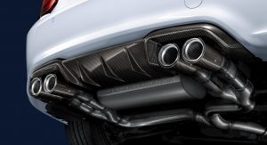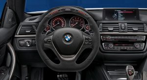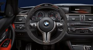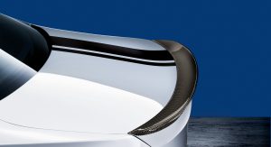 Available from next summer on the M3 and M4, the BMW M Performance rear wing is made entirely of carbon and adorned with the M stripes, but if you cannot wait that long, then you might want to check out the adjustable sports suspension, which is aimed at the same two cars. Promising to “further enhance the handling dynamics”, it can lower the ride height between 5 and 20 mm (0.2-7.9 in), “in order to obtain the ideal setting for different road and racetrack conditions”, as the Germans explain.