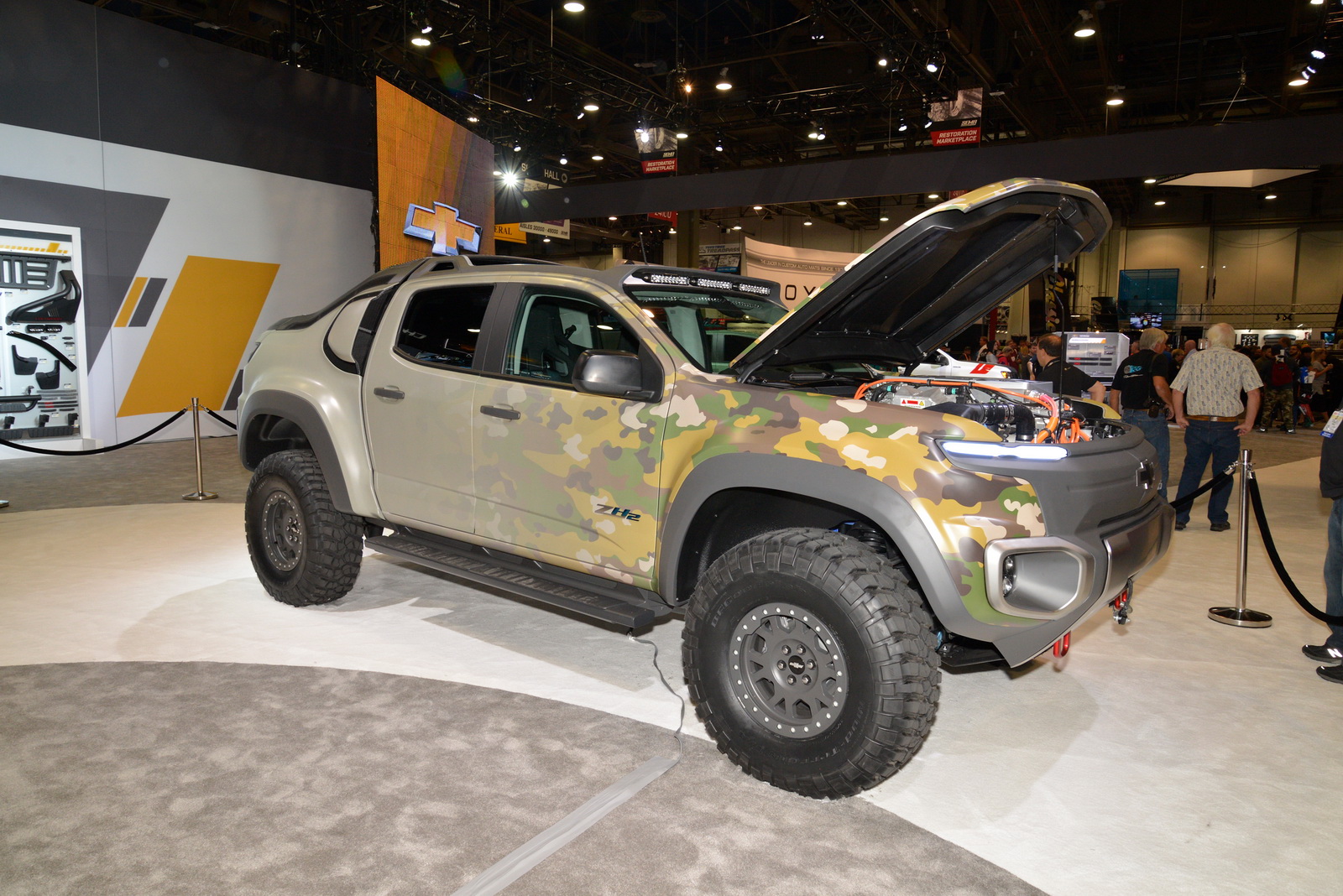 That’s why Colorado ZH2 will commence military field testing in 2017 in order to evaluate the effectiveness of such a vehicle in mission settings – according to Chevy. Although based on a stretched and reinforced Colorado chassis, the prototype has little in common with the road-going vehicle. The cab, doors, and roof are the same, but everything else was modified or upgraded; for instance, the cab was moved back 5 inches (125 mm) to accommodate 37-inch off-road tires, so the car’s proportions are slightly different.