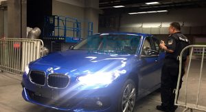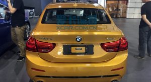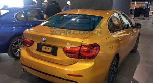 These shots depict the 1-Series Sedan preparing for its world debut at the Guangzhou Auto Show and show the model finished in both yellow and blue while also revealing the interior.
