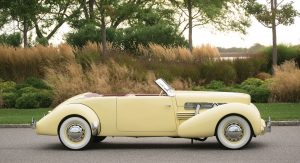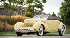 One of the great American carmakers of the Art Deco era, Cord was a sister-brand of Auburn and Duesenberg in the 1930s. It produced vehicles like the one pictured here, a 1936 Cord 810 Phaeton sold by RM Sotheby’s last month for $154,000 in Hershey, Pennsylvania: vehicles that were technologically advanced and singularly beautiful.