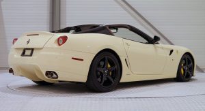 Currently offered by CarLink on James Edition, it has an asking price of 1.168 million euros ($1.29 million) and is one of the most interesting of the 80 ever produced. While most were finished in traditional Ferrari colors, this one has been painted in a special shade of cream dubbed Avorio. The paint is then offset by a brown leather interior.