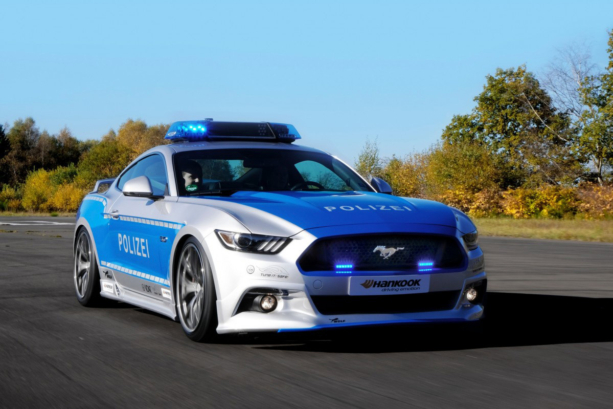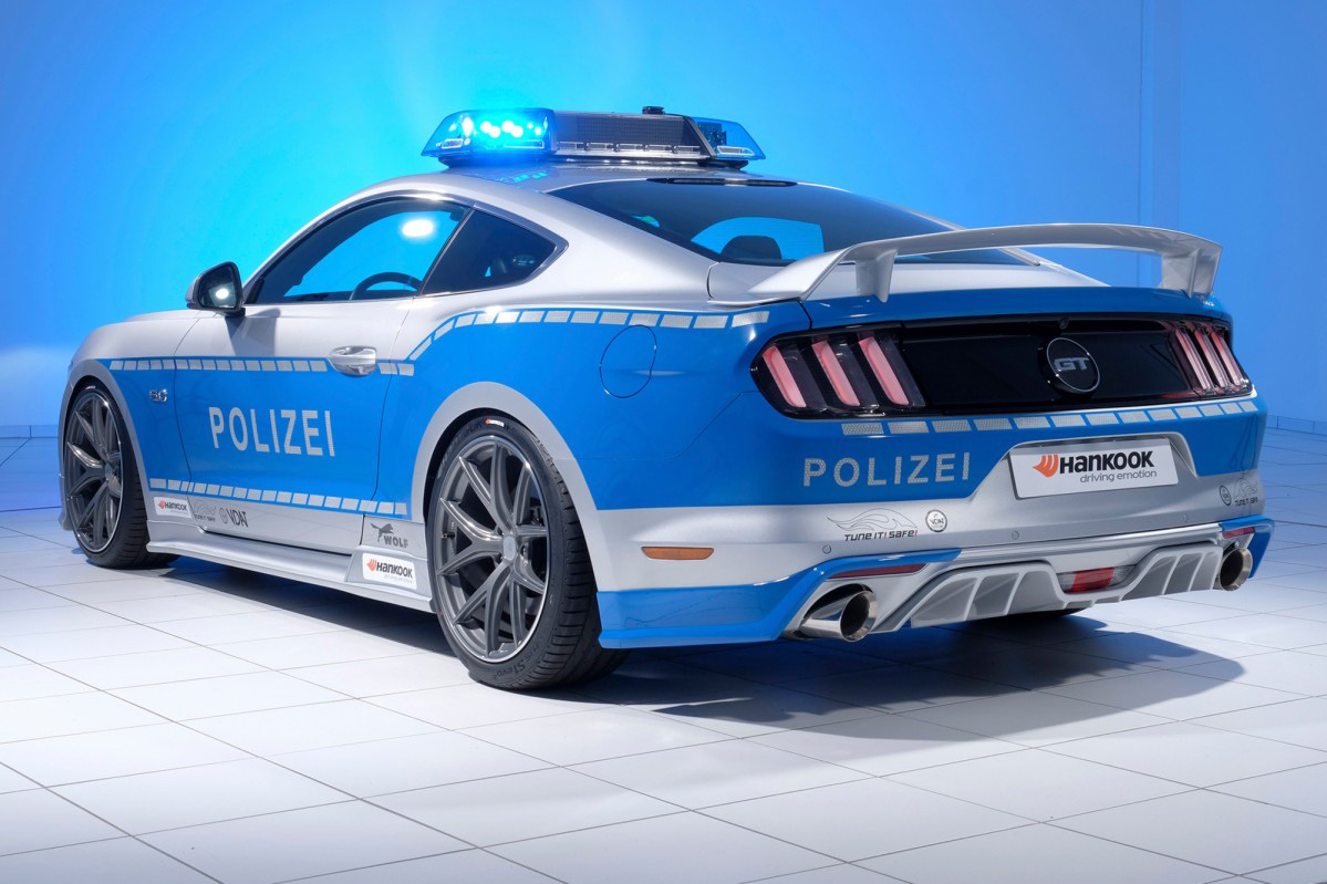 As with every year, the car has been adorned in a local ‘Polizei’ livery that includes bright blue decals on top of the silver paint scheme. Additionally, the Mustang has been fitted with a new body kit, a set of black wheels matched to incredibly low-profile tires and height-adjustable coilovers.