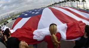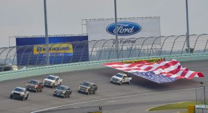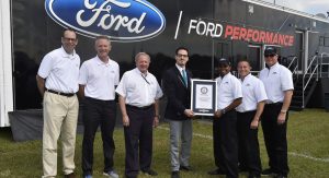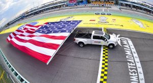 The record, officially dubbed the ‘World’s Largest Flag Pulled by a Moving Vehicle’, was claimed by Ford on Saturday morning when it completed four laps at Homestead-Miami Speedway while towing a U.S. flag measuring 45 by 92 feet.