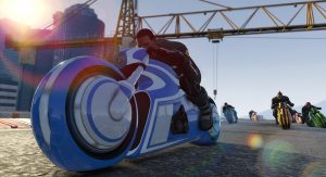 In their latest release, though, Rockstar lets you relive (or try for the first time) the 1980’s arcade-style video games through a Tron spoof. The new mode even adds a new bike, called the Shotaro, that bears an uncanny resemblance to Tron’s light cycles, and a light suit to match it.