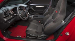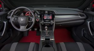 Inside, Honda says the interior of the Prototype closely previews the finished product and includes a set of sports seats exclusive to the Civic Si. Additionally, there’s red contrast stitching, aluminium sport pedals and ‘Dry Metal Carbon’ trim on the instrument panel.