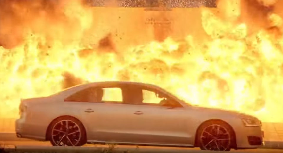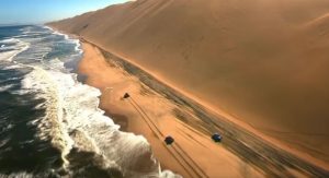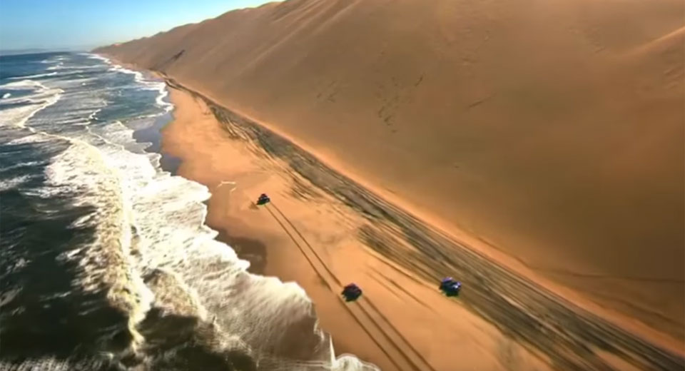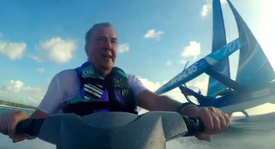 Additionally, we see Clarkson on a jetski racing alongside a massive catamaran, the trio driving three modified dune buggies right next to the ocean and James May shooting a machine gun from the back seat of an Audi A8.