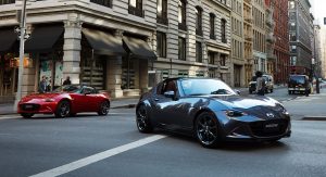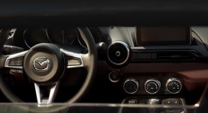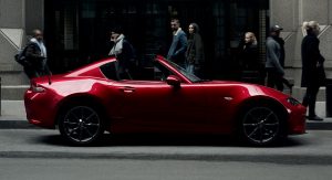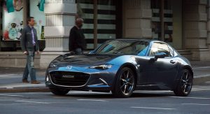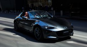 The roadster is powered by a 2.0-liter, SkyActiv-G petrol four-cylinder mated to either a six-speed manual or a six-speed automatic gearbox. Depending on the version, the Mazda Roadster RF can be had with a piano black roof, a choice of six exterior colors and 17-inch, chrome-finished, alloy wheels.
