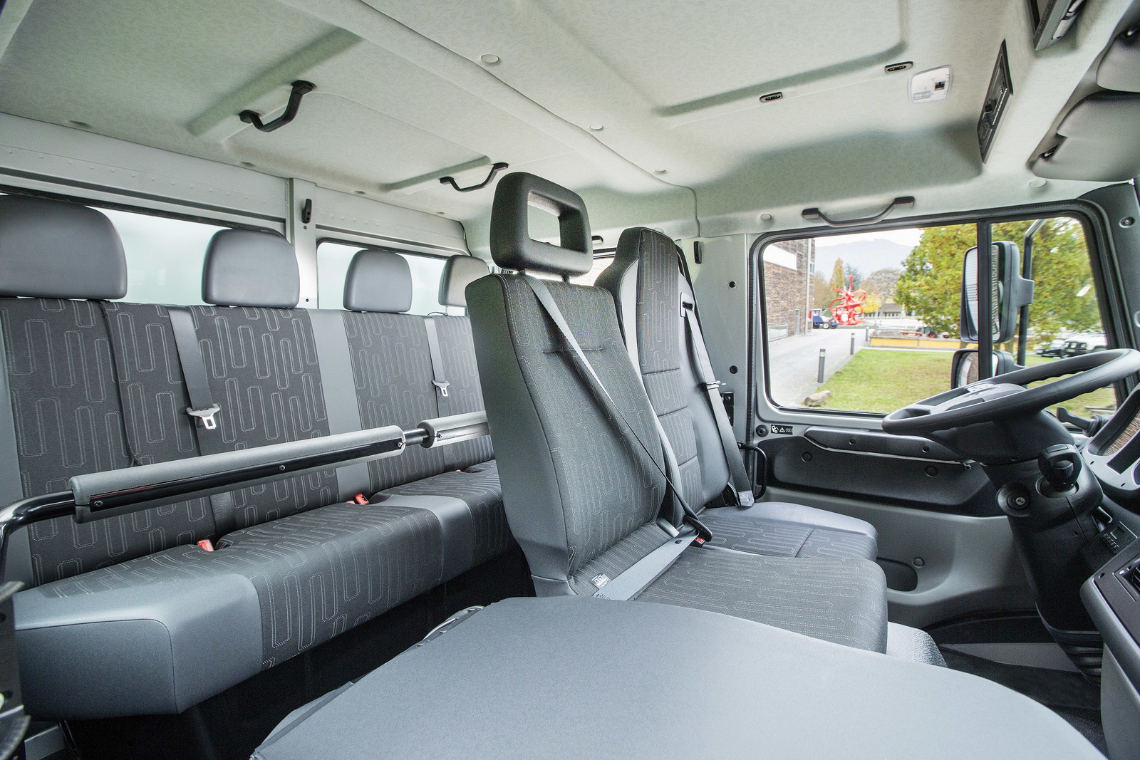 As for the highly versatile truck that became famous for its off-road abilities, it tips the scales at 10.3 tonnes (22,708 lbs), and takes its power from a four-cylinder engine that delivers 230 PS (227 HP) and an impressive 900 Nm (664 lb-ft) of torque at 1,400 rpm. Making sure that passengers have a firm hold while the vehicle is being driven over fallen tree trunks and slopes tilted 30 degrees sideways, are the roof-mounted grab handles and a sturdy padded steel tube crossing in front of the bench seat.