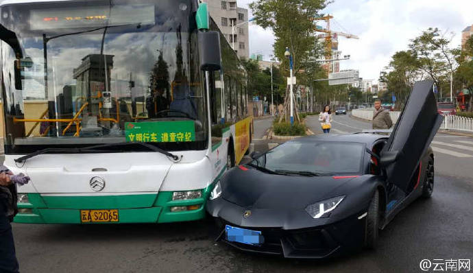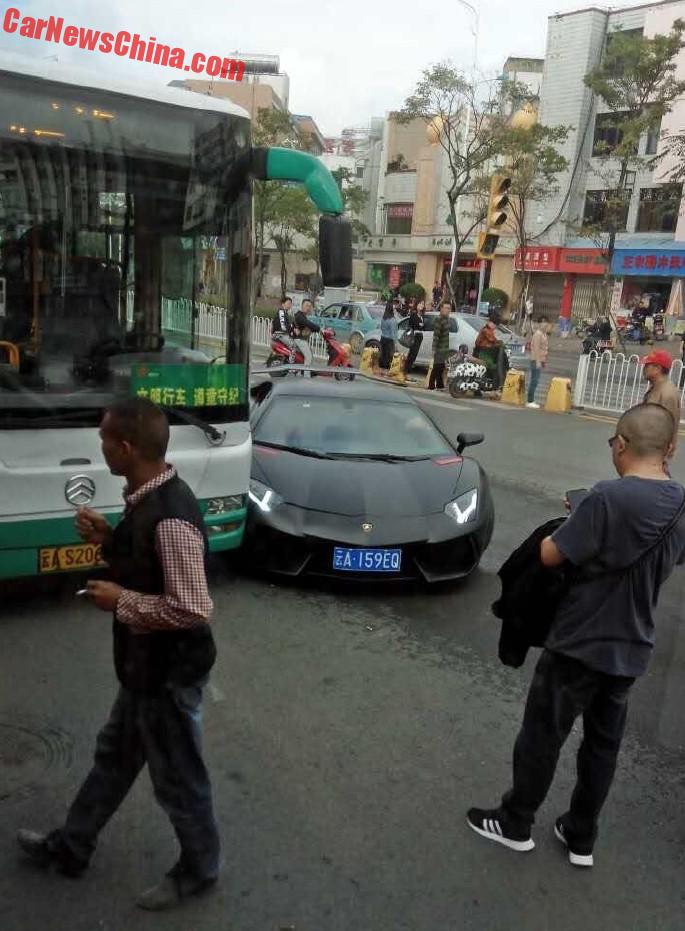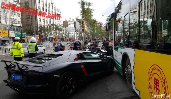 The latest took place in Kunming, the Yunnan Province, and saw the owner of a lightly modded Lamborghini Aventador in a hurry to change direction, a process during which he failed to see the bus, and a couple of precious seconds later, the two vehicles touched each other.