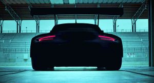 As with the recently-released teaser sketch, the shot above of the RSR’s rear-end perfectly encapsulates the model’s racing prowess which appears dominated by the towering, swan-neck rear wing. Compared to the road car, massively flared wheel arches are also visible.