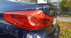 The rest of the car is clearly equipped with the M Sport package, featuring a custom front spoiler with large air intakes, a subtle rear deck lid spoiler and rectangular tailpipes. While we can’t see the interior, it should have a three-spoke leather steering wheel, aluminum pedal covers and footrest, bespoke floor mats and a SensaTec upholstered dash.