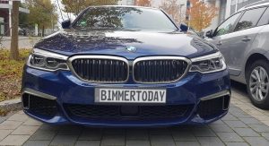 These images come courtesy of BimmerToday and their reader Todor who spotted the new-generation mid-size premium saloon in a parking lot. Presumably, we’re looking at a pre-production model because it’s missing the 19″ Cerium Grey M-wheels as well as the Cerium Grey exterior mirror housings.