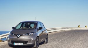 In this form, the 2017 Renault Zoe uses a new battery pack, which increases the total driving range up to 400 km (~250 miles) on a single charge in the NEDC, but the French are more down-to-earth when it comes to driving it in the real world and state that it will do 300 km (186 miles) before needing to be plugged in again.