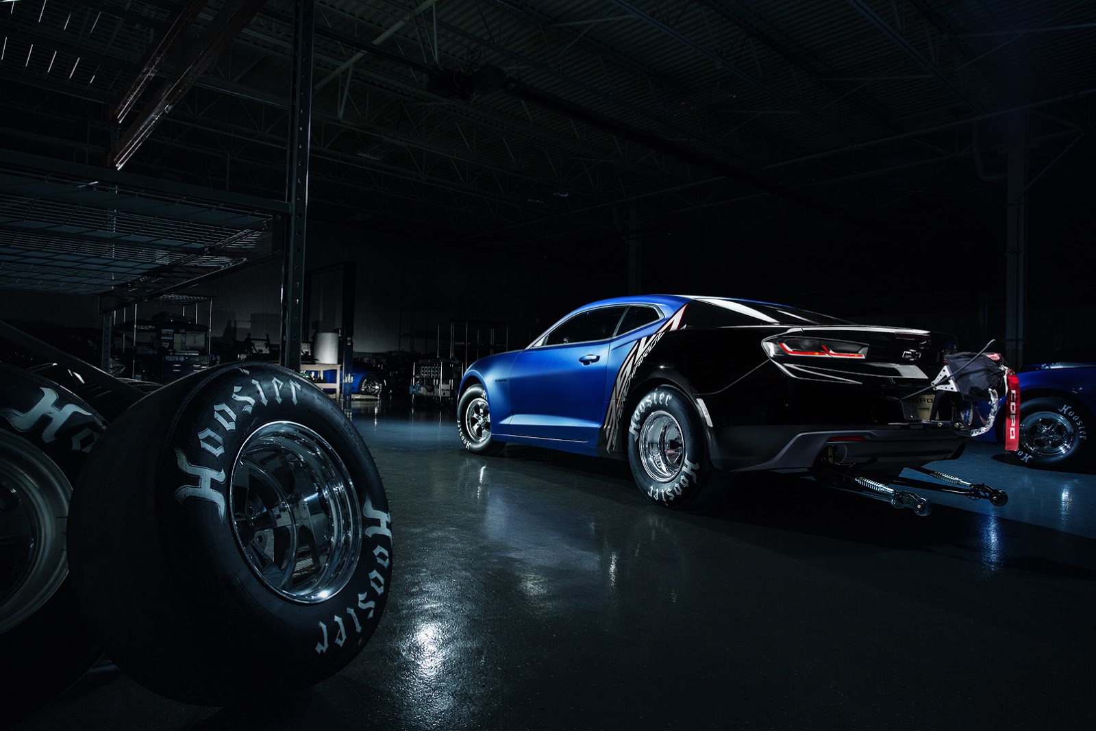 The front three quarter of this COPO Camaro is finished in satin blue (dubbed Hyper Blue Metallic) which has then been offset with a gloss black rear end and a ‘350 Supercharged’ red and white livery. The finished product looks the most appealing of any unit we’ve seen so far and is bound to turn heads at the drag tripe.