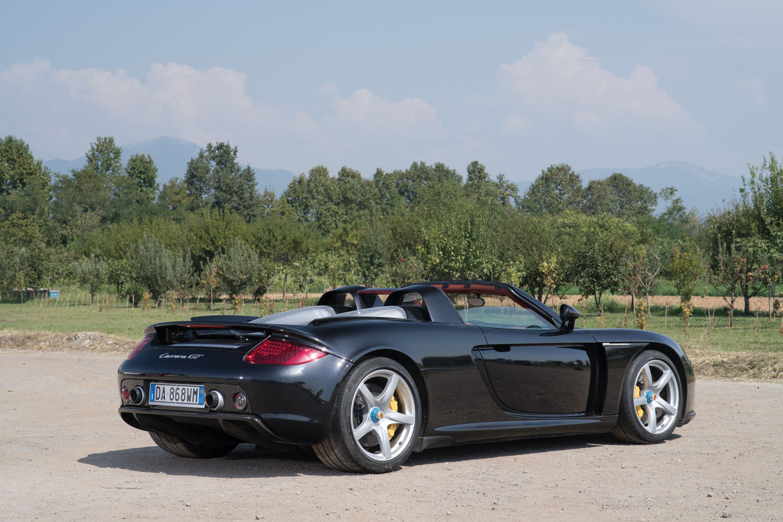 The Carrera GT, meanwhile, is a 2005 model in metallic black with Terracotta leather. It has less than 4,700 miles on the clock and looks positively stunning. With a 5.7-liter V10 good for 605 horsepower, you’re not bound to see it sitting still for long.