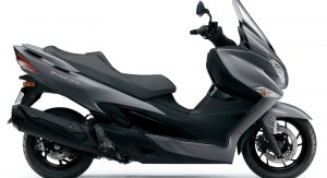 Last but not least is the Burgman 400, set to appear in dealerships late in the spring. This 2017 model gets a comprehensive restyling with sharp LED headlights and integrated LED position lights, just like the GSX-S125. There’s also a new upswept windscreen design for better weather protection, a new stepped seat (20 mm thicker), new grab rails and a fresh rear design adding to the slimmer, sharper appearance.