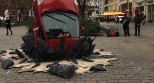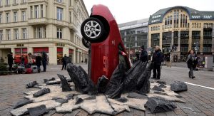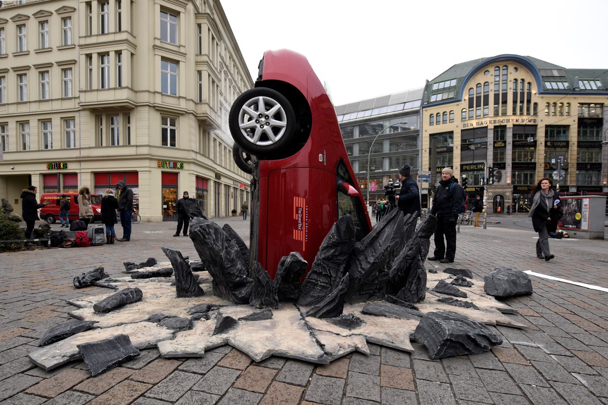 In Berlin, the Japanese hybrid that has fallen victim to the show’s marketing campaign is half-buried into the concrete and initially baffled Germans, who didn’t know what they were looking at, until they saw the now famous logo applied on the doors.