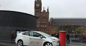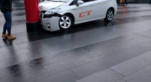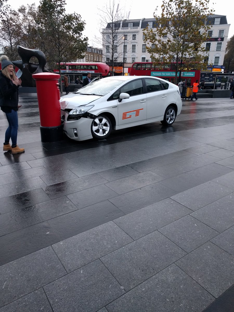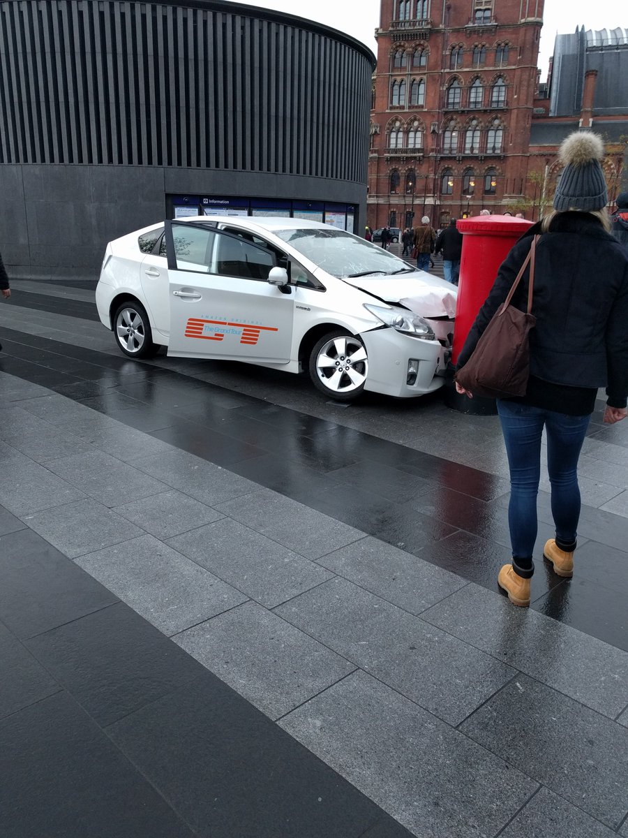 Londoners had their very own encounter with a mashed up Prius, whose front end is leaning onto a mailbox, blamed on James May, and accompanied by a social media caption that says “the only real acceptable use for a Prius”.