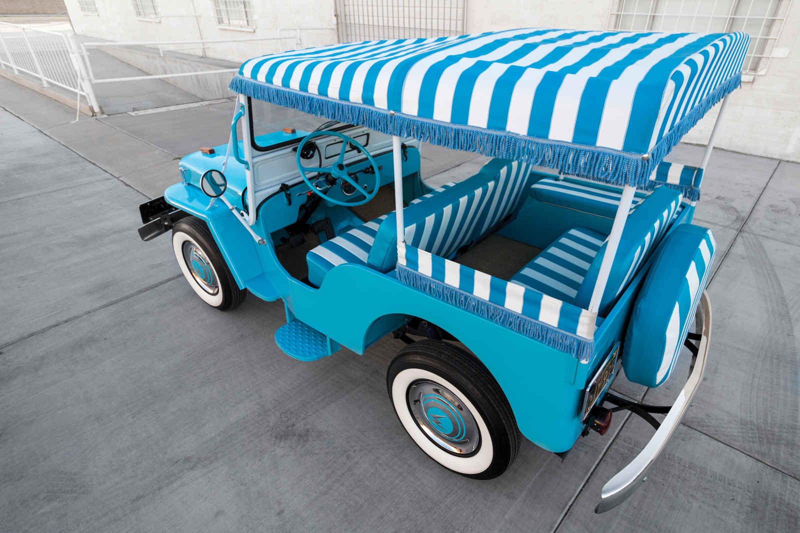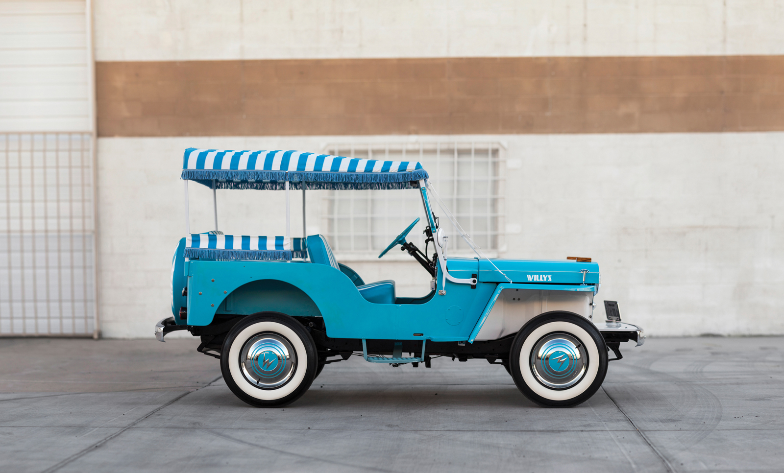 What you’re looking at is a 1960 Willys Surrey Gala, a take on the proto-Wrangler evidently designed for running down to the beach. And it’s going up for auction at the RM Sotheby’s sale in Scottsdale, Arizona, this coming January.