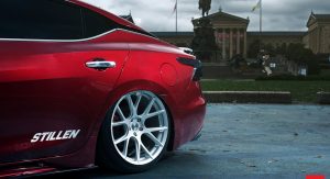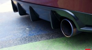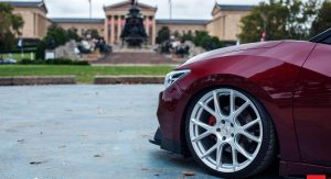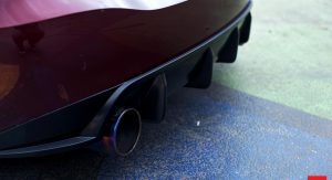 Overall, the color scheme does seem to make sense as the black bodykit components go together with the tinted windows and the black exterior mirror covers, while the chrome door handles and front grille design compliment the custom Vossen wheels.