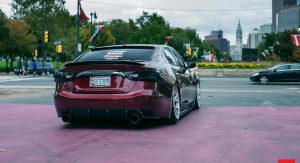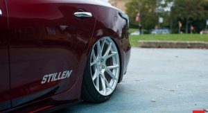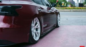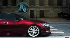 Aside from everything that generally helps the Maxima stand out in a crowd, this particular car has been lowered and placed on a set of large Vossen VFS6 wheels.