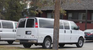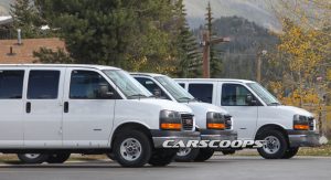 Pictured here is a hodgepodge of vans and delivery trucks from America’s two largest automakers. There’s a pair of Ford Transit passenger wagons, a smattering of full-size GMC Savanas (lest you think they don’t make them like that anymore), and a pair of cab-over medium-duty commercial vehicles wearing the GMC and Isuzu badges.