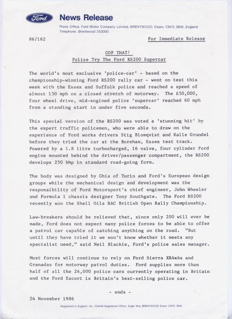 Still, a Focus RS vs RS200 comparison will surely tick everyone’s fancy, sp Ford even put together a small clip that you can watch below, together with a picture of the original press release from November 24, 1986.