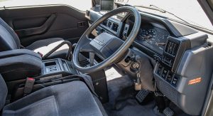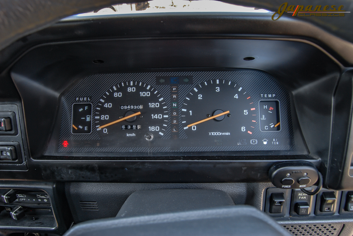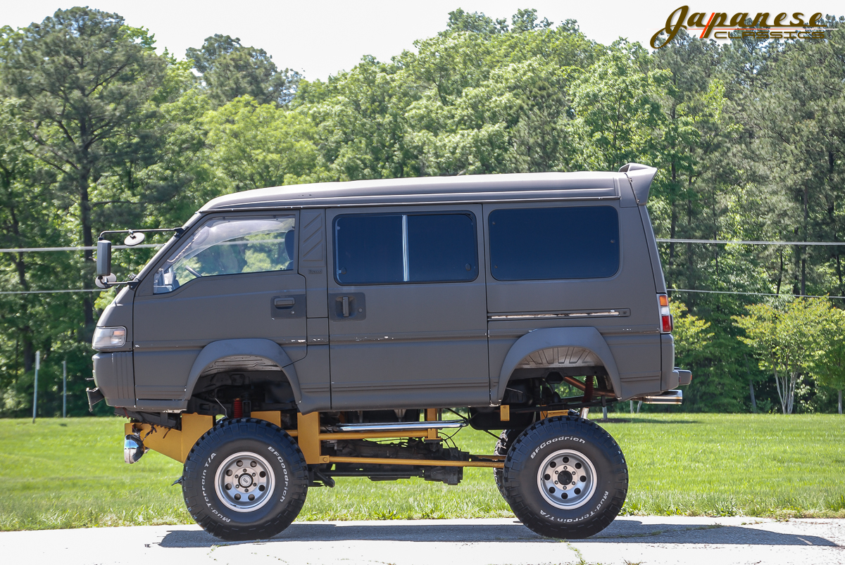 This 1991 example is currently up for sale from Japanese Classics in Richmond, Virginia and has been jacked up so high that it is essentially a monster truck. That look has been achieved with a 15-inch body lift, a 2-inch suspension lift and 15-inch wheels installed with huge BFGoodrich tires. Additionally, it includes a matte paint finish and tinted side windows to give it that real go-anywhere look.