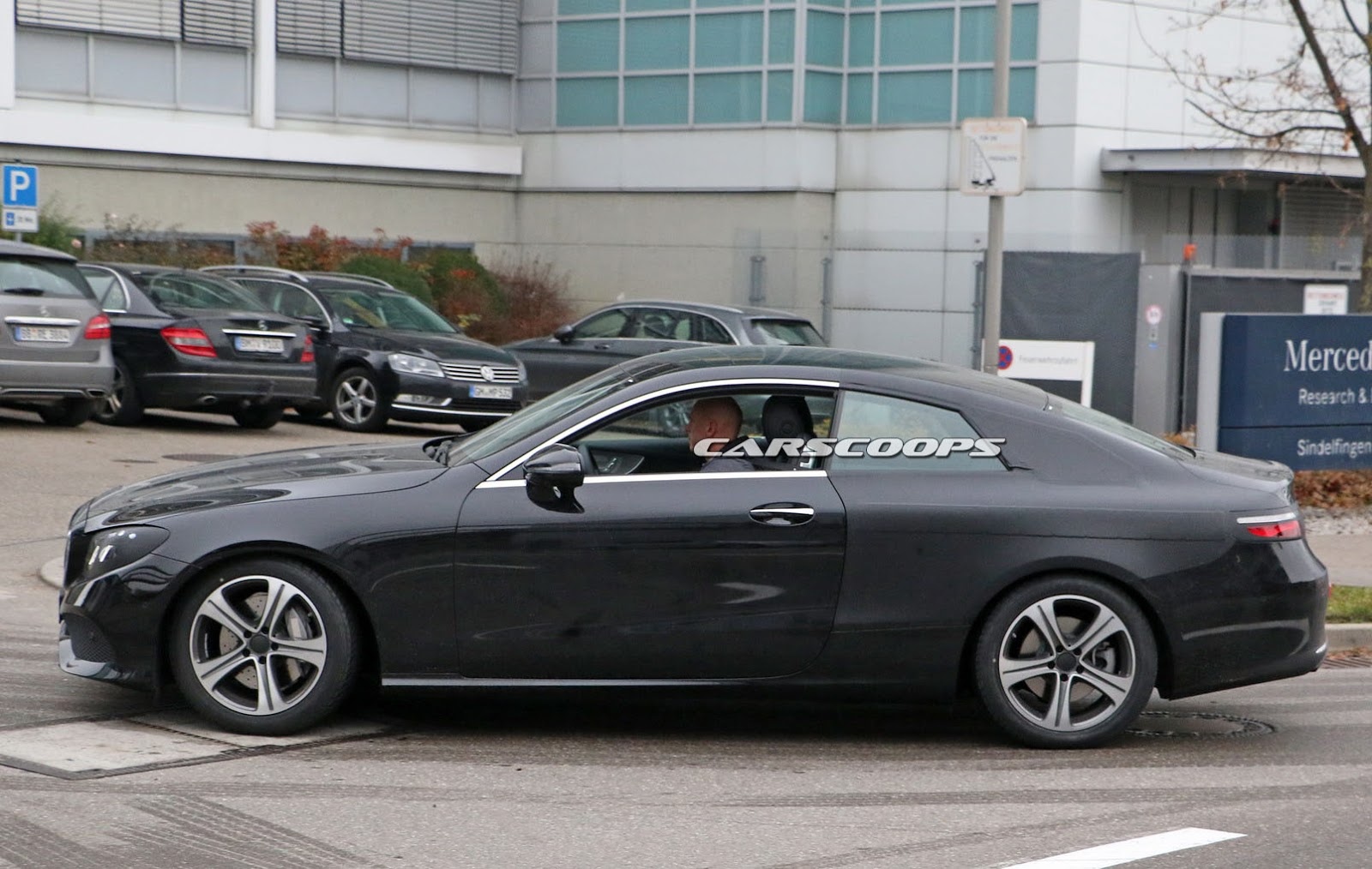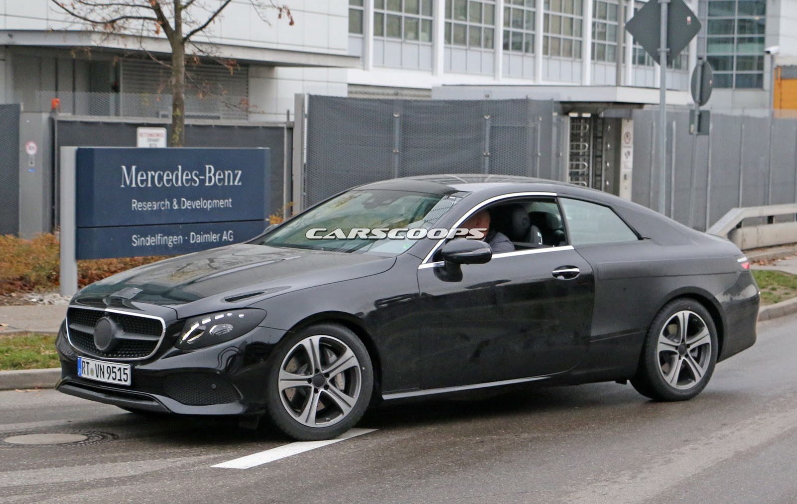The upcoming 2017 Mercedes E-Class Coupe is in the final stages of its development, with our spies spotting a test car with no swirling camouflage applied on it.