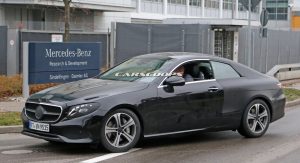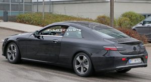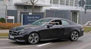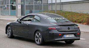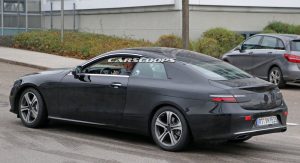 As the time for the official reveal approaches, Mercedes opted to replace the traditional prototype camouflage with a flat black wrap, giving us a proper look on the two-door version of the E-Class.