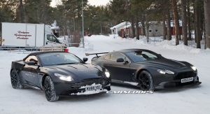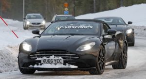 After those three images that we published two months ago, we now have a fresh batch of Aston Martin’s upcoming DB11 Volante that were snapped during cold weather testing in Sweden.
