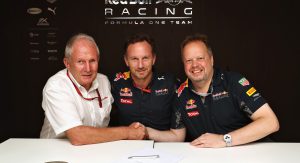 Now that the season has come to an end, the two have extended their relationship for another year. The deal, brokered by Aston CEO Andy Palmer who did the same for Infiniti when serving as its chairman, will see the British automaker’s logo appear on the victorious F1 team’s cars for another year. But of greater interest is what they are cooking for the road.