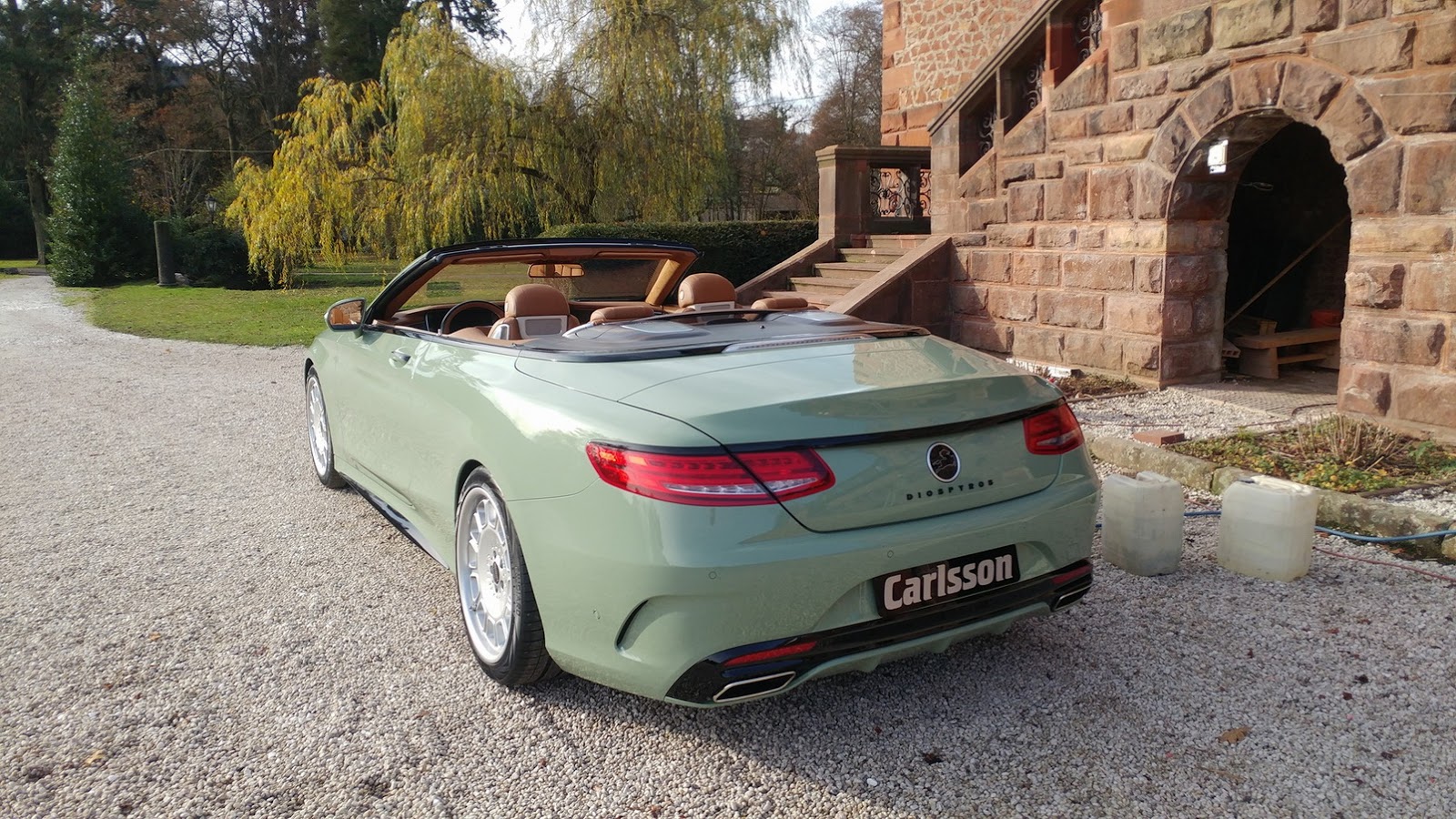 This luxurious Mercedes-Benz convertible is wearing Carlsson Heritage Green, a color that creates a discreet golden shimmer in direct sunlight.