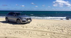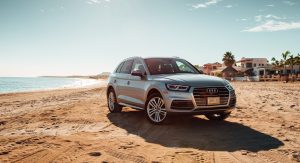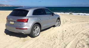 U.S. cars also do without air suspension and adaptive steering offered globally, Audi USA product planning’s reasoning being a 2.0T Q5 buyer won’t spring for what is bound to be an expensive option. The SQ5, however, will get the air setup and more elaborate steering. Without experience of the system, it’s tough to say whether ride or handling characteristics would be substantially improved when equipped with the options, but the standard Q5s seemed generally composed and responsive on pavement and in a little bit of off-roading when we hit the beach near Cabo San Lucas, Mexico.