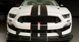Additionally, Ford Performance has outfitted the racer with a modified six-speed Tremec manual transmission, 19×10.5-inch front and 19×11-inch rear wheels, optional exterior graphics, an adjustable carbon fiber rear wing, quick-release steering wheel and Sparco racing seat.