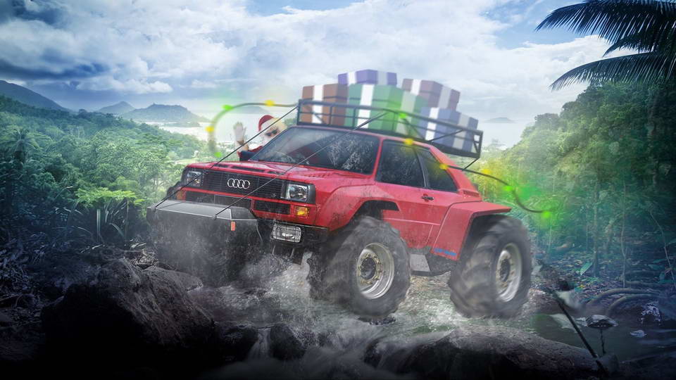 The Quattro is, perhaps, the best Group B rally car of all times and, most certainly, an animal in S1 guise. Fitting a set of monster truck wheels and jacked-up suspension ensures that, no matter how treacherous the conditions, Santa will be able to make it through the rainforests.