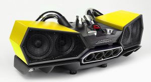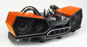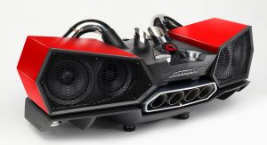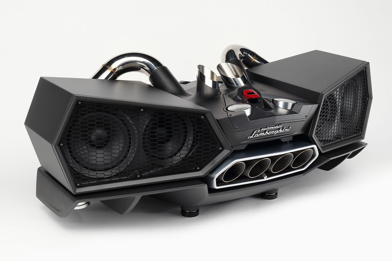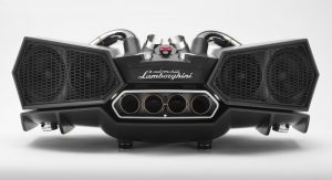 In fact, Lamborghini says it uses a carbon fiber monocoque chassis as well as a real exhaust system from the Aventador. Additionally, it includes a shock absorber system for each of the ceramic speakers.