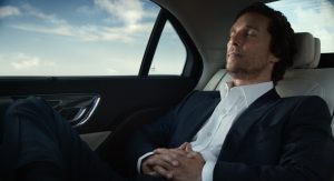 Furthermore, this is the first time we get to see McConaughey featured in the back seat, showcasing some of the rear seat amenities available for the Continental, such as the chauffeur switch which he uses to move the front passenger seat forward for extra legroom.