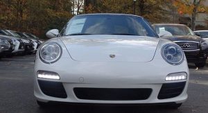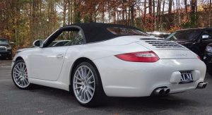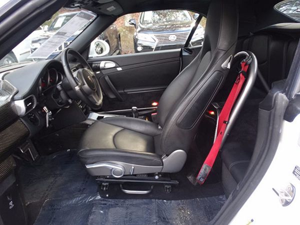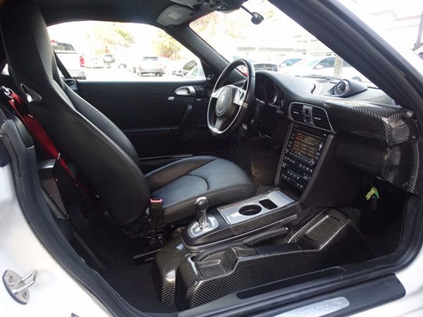 From the outside, the 911 looks totally stock and has a stylish white paint scheme with a set of silver wheels. It also appears to have an aftermarket exhaust system.