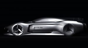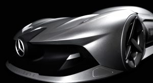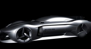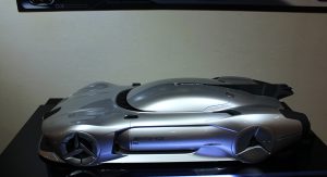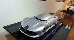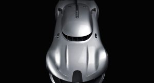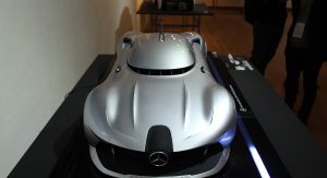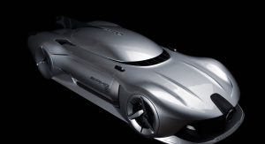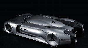 Unlike the real-life W196 Streamliner, Im’s car has a closed cockpit and includes modern-day aerodynamic aids like a Le Mans-inspired fin behind the cockpit and a bold splitter.