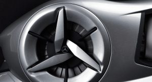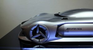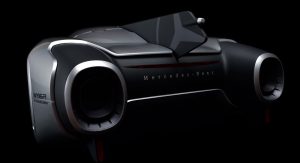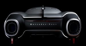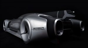 Other key design touches of the 2040 W196R Streamliner include the bulging jet engines at the rear, the enclosed rear wheels and as with any great Mercedes, a huge three-pointed star badge on the front grille.